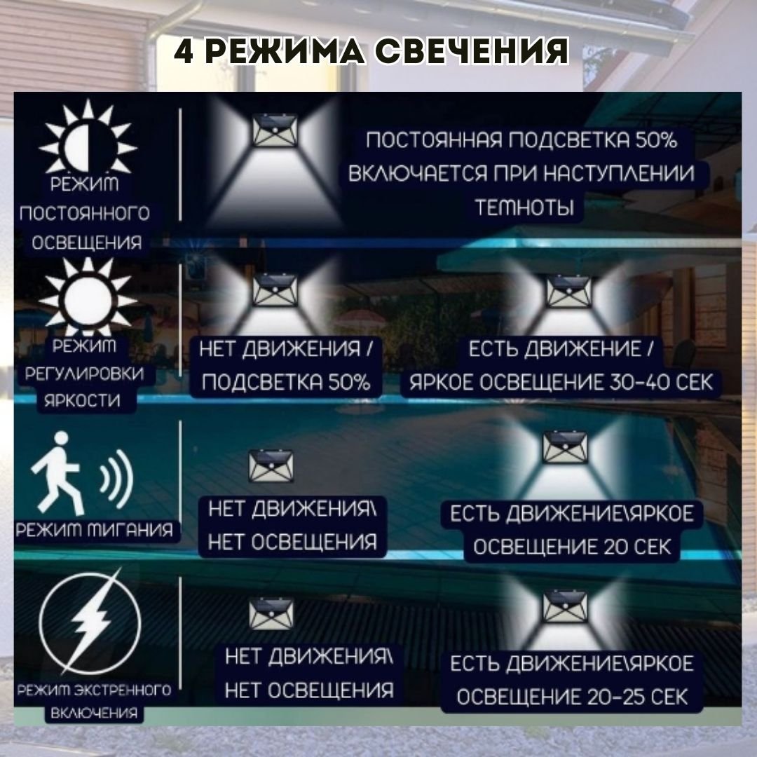 - Режим мигания включает мигающий свет на 20 секунд при приближении человека, затем свет выключается.