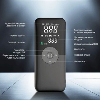 - Насос автоматически определяет давление в шинах при подключении к воздушному соплу.