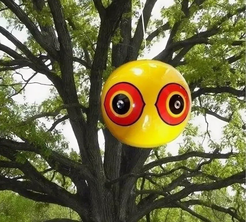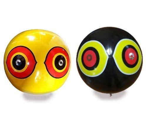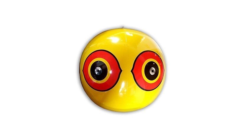 Комплект из двух разноцветных виниловых шаров диаметром 60 см с нанесенными на них изображениями глаз хищной птицы. Покачиваясь на ветру, шары вызывают у птиц инстинктивный страх, а светоотражающие вставки дополняют эффект.