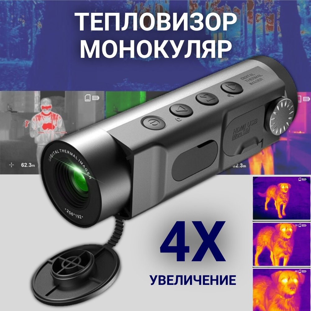 Тепловизионный прицел монокуляр ANYSMART легкий и компактный, подходит для охоты и слежки. имеет высокоэффективные функции обнаружения и визуализации. Оснащен чувствительным тепловым датчиком 256 х 192, который имеет размер элемента матрицы 12 мкм и NETD<40mK.