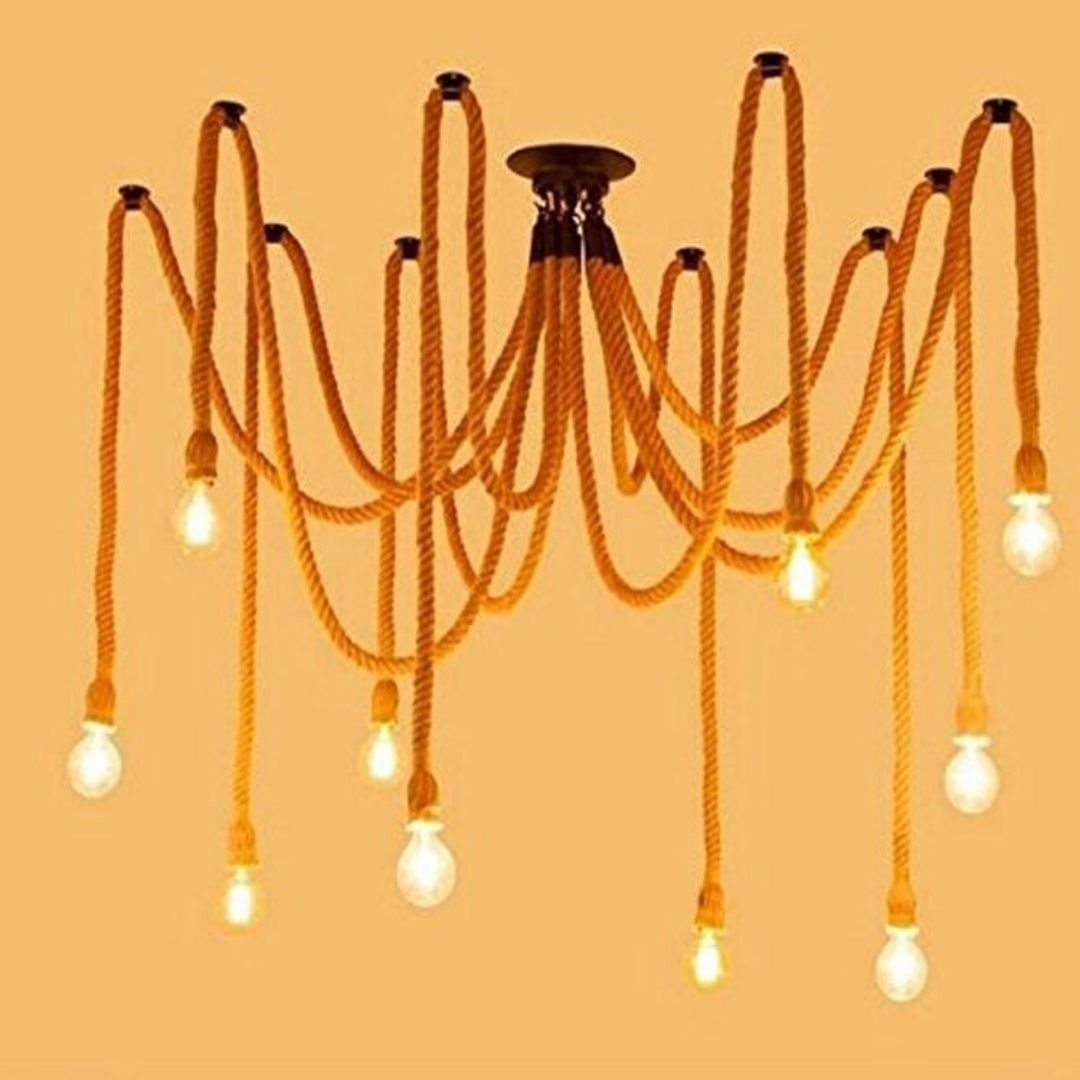 Электрические провода и патроны спрятаны в пеньковые канаты, что обеспечивает безопасность и эстетичный вид. Количество патронов - 10, а тип цоколя - Е27.