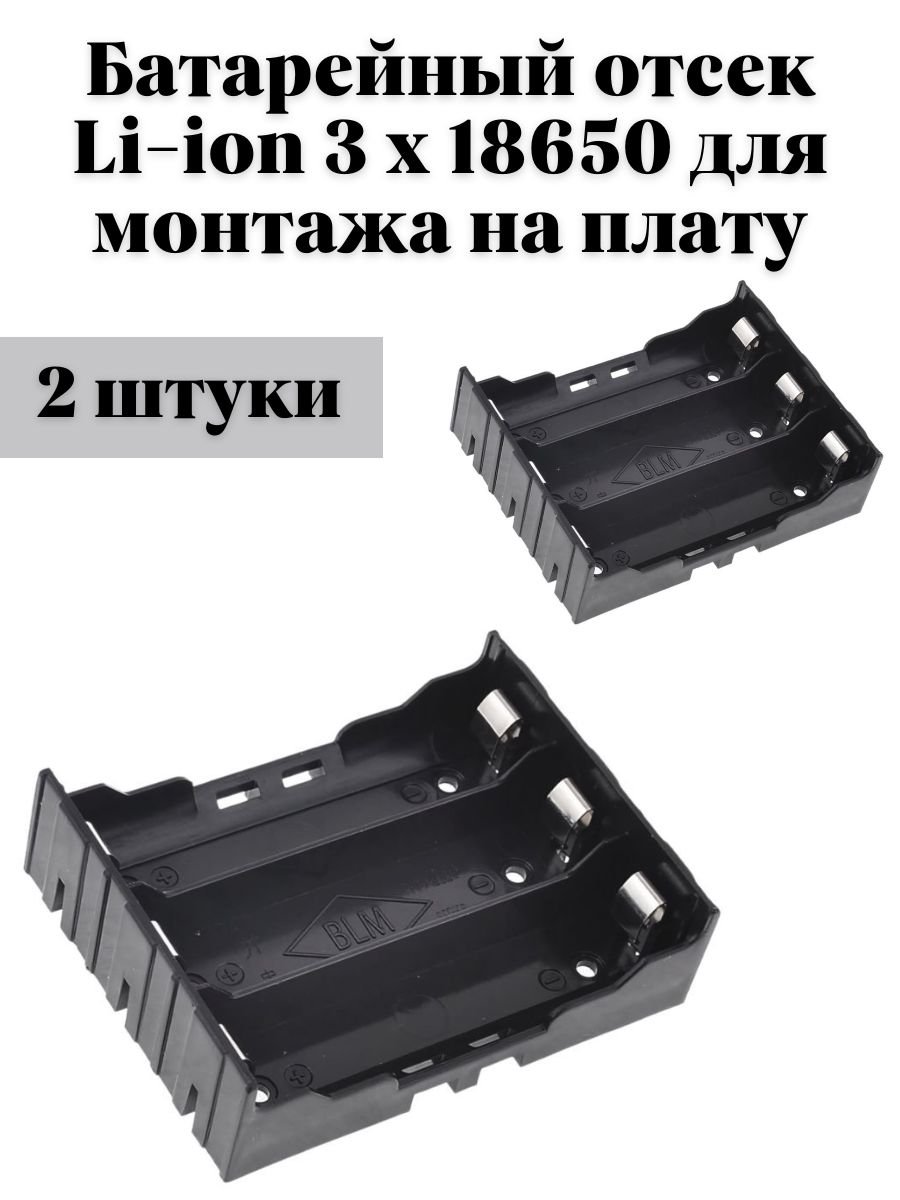 Батарейный отсек для монтажа на плату 3?18650 ANYSMART BH-18650-PC6. Профессиональное решение для энергоемких устройств. Оптимизированная конструкция - компактные габариты при повышенной мощности. Безопасность – огнестойкий ABS-пластик с добавками.