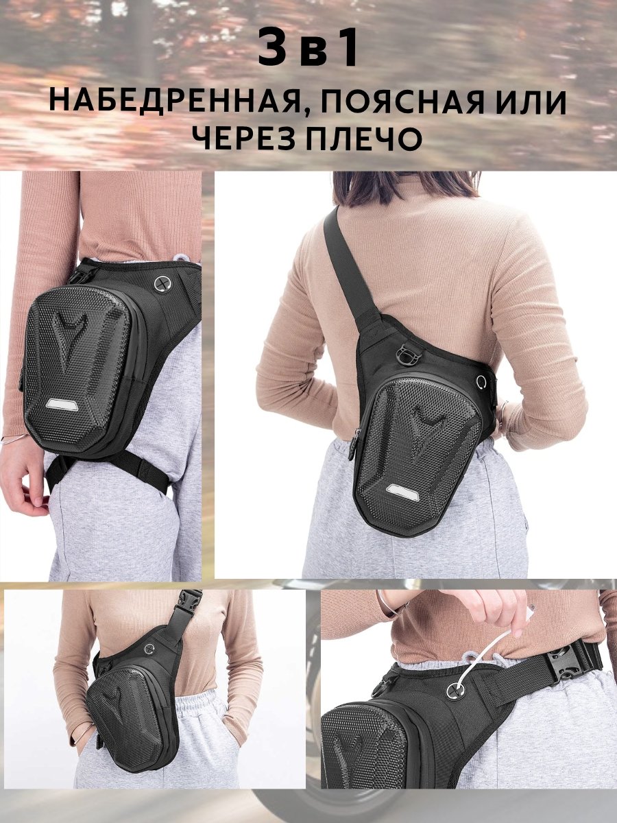 - 3 в 1: Набедренная, поясная или через плечо (кросс-боди).