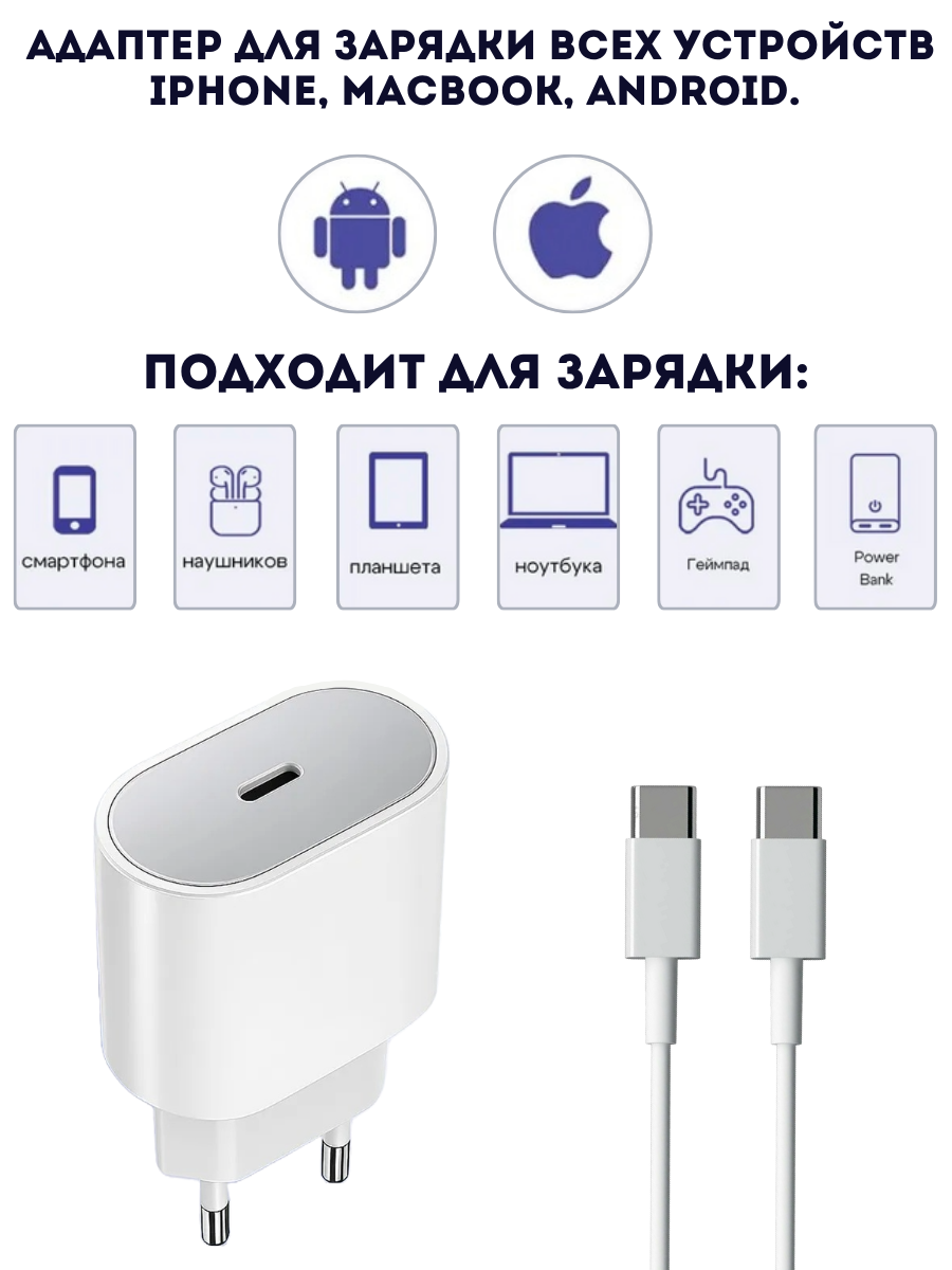 Умное зарядное устройство 35W USB-C для всей вашей экосистемы Apple и Android. Преобразите свой подход к зарядке! Наше универсальное зарядное устройство 35W USB-C - это интеллектуальный хаб для энергии, который понимает потребности каждого вашего гаджета. Больше не нужно запоминать, какой блок для какого устройства - теперь у всей вашей техники один источник питания.